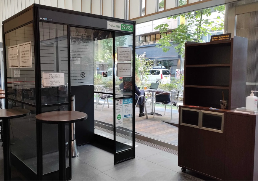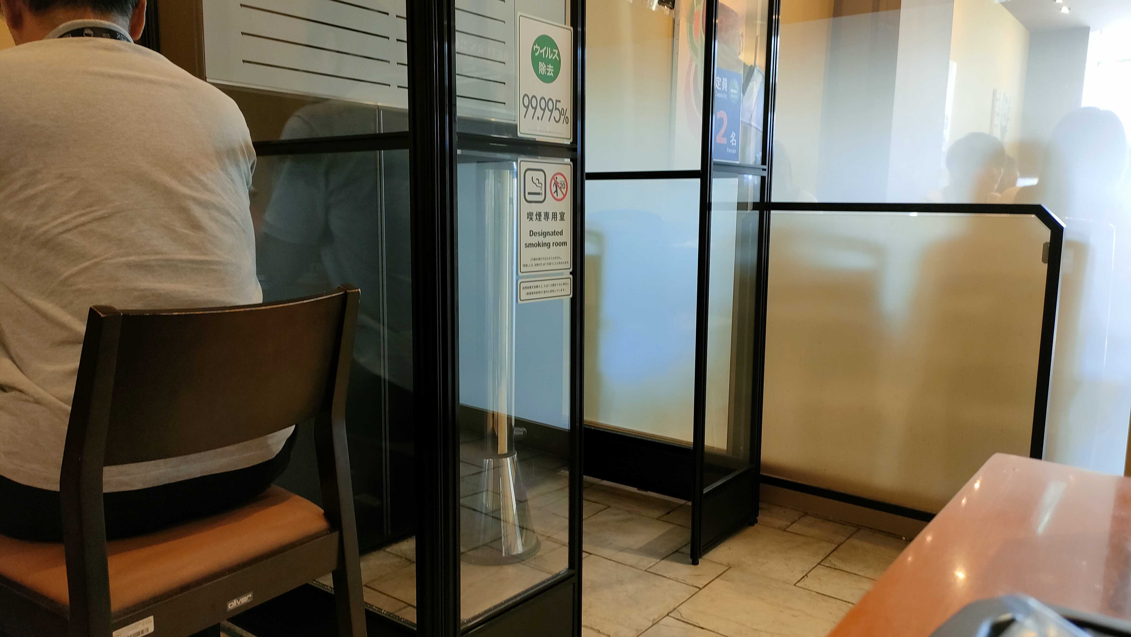 この店舗では喫煙エリアと禁煙エリアに分かれており、喫煙ブースは喫煙エリアに設置。2人用の喫煙ブースが導入されていました。